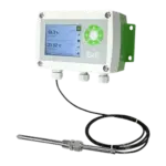 Advanced transmitter providing detailed humidity and temperature data with an intuitive color display. Supports multiple humidity calculations and USB setup, designed for challenging HVAC and industrial monitoring scenarios